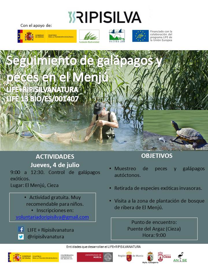 Este próximo jueves, realizaremos una actividad de seguimiento de fauna riparia y control de especies exóticas invasoras en el paraje de El Menjú (Cieza)