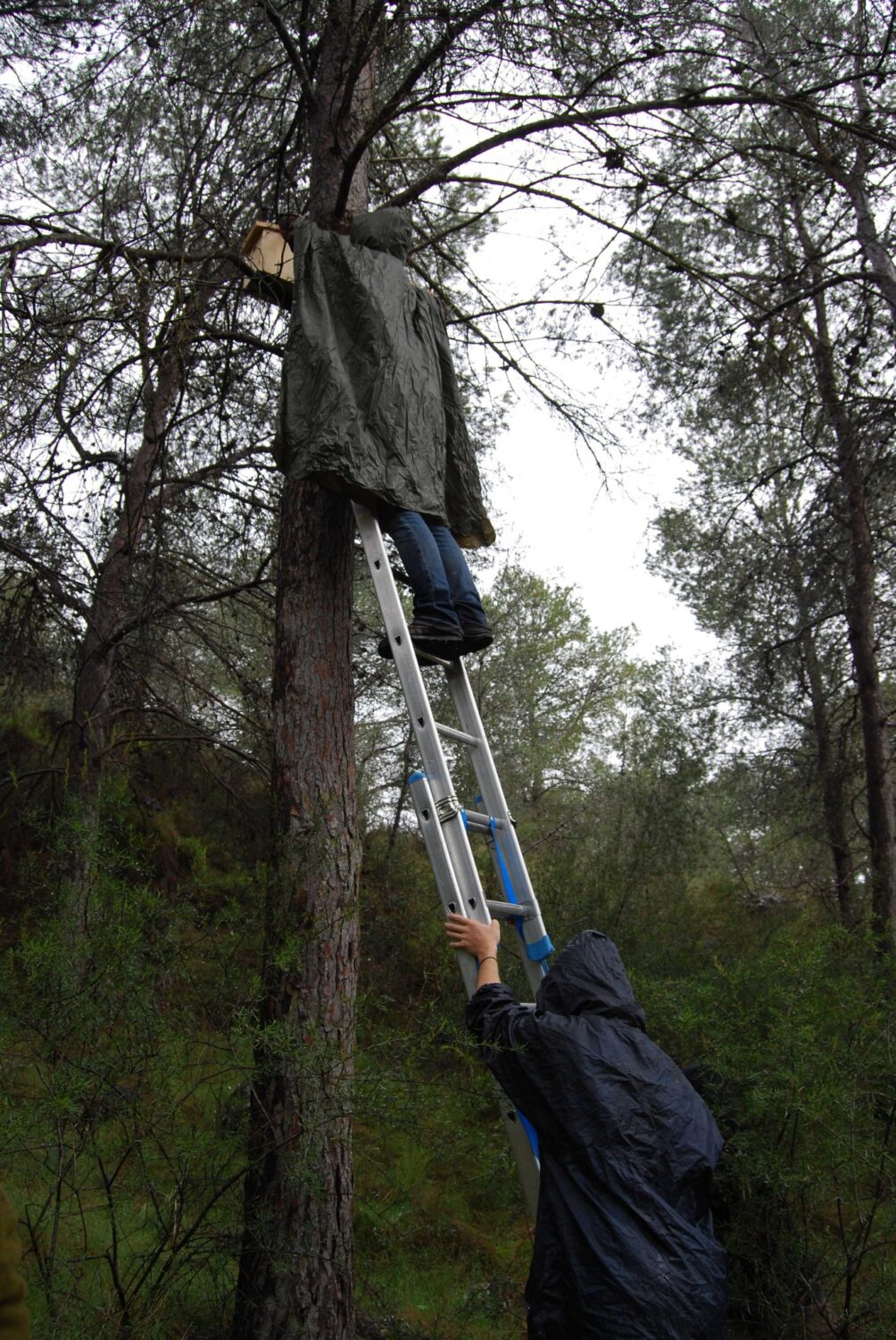 El domingo 21, la lluvia nos impidió anillar, pero a pesar de ello se siguieron colocando cajas nido y se terminó la construcción. Hasta el momento hay 48 cajas para páridos construidas y 6 para Autillo. De las primeras, 26 ya están colocadas en distintos puntos de El Valle.