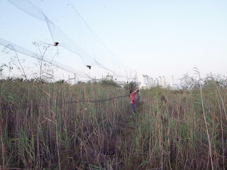 Varios voluntarios participaron el viernes en un anillamiento científico de aves en el que se capturaron 184 individuos de 9 especies, siendo la más abundante la Golondrina común (Hirundo rustica) con 160 capturas. Otras especies que cayeron en las redes fueron la Curruca cabecinegra (Sylvia melanocephala), Avión Zapador (Riparia riparia), Mirlo común (Turdus merula), Ruiseñor (Cettia cetti) Golondrina dáurica (Hirundo daurica), Gorrión común (Passer domesticus), Buitrón (Cisticola juncidis) y Ruiseñor pechiazul (Luscinia svecica).