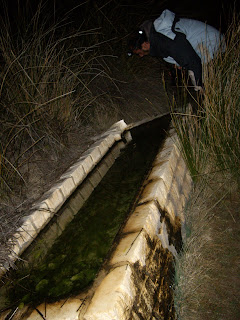 Ejemplar de sapillo moteado localizado durante el muestreo nocturno.