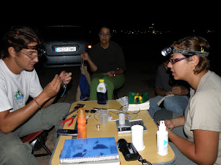 El viernes al atardecer se realizó una sesión de anillamiento de aves en el carrizal de la zona de preparque del Parque Regional. Con la participación de una anillador experto del grupo de anillamiento de ANSE se colocaron cuatro redes de 12 metros y se puso en funcionamiento un reproductor de cds con un reclamo para Golondrina común (Hirundo rustica). Desde las siete de la tarde hasta las nueve y media se capturaron un total de 36 aves pertenecientes a las siguientes especies: 2 ejemplares de Mirlo vulgar (Turdus merula), 2 ejemplares de Tarabilla común (Saxicola torquatus), un ejemplar de Buitrón (Cisticola juncidis) y 31 ejemplares de Golondrina común. todavía no ha sido posible capturar ningún ejemplar de una de las especies objetivo, el Ruiseñor pechiazul (Luscinia svecica), tal vez por lo temprano de las fechas para su paso migratorio.