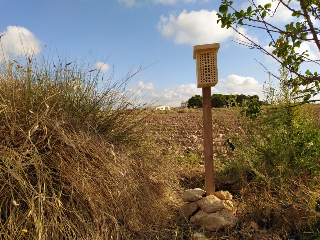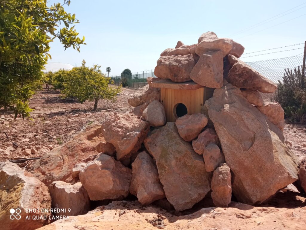 Refugio para mochuelos en una zona agrícola.