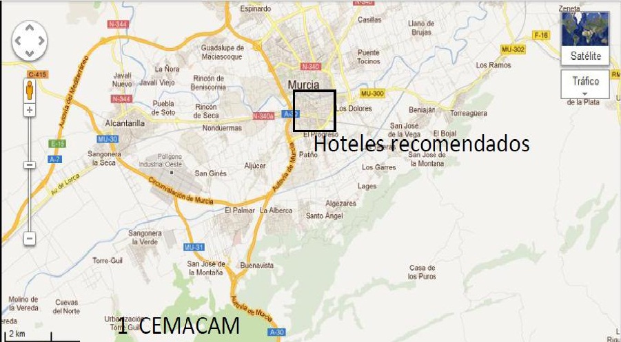 Dentro do CEMACAM, há uma maquina de café expresso e outra de lanches, doces e salgados. Um táxi de Murcia pode custar em torno de 25 euros. Um táxi do Aeroporto de Alicante, pode custar em torno de 70 euros. Se voce deseja abandonar o recinto para dar um passeio noturno, por favor comunique ao pessoal de segurança do CEMACAM. (das 20 às 08: 00h). Fôlder Informativo do CEMACAM