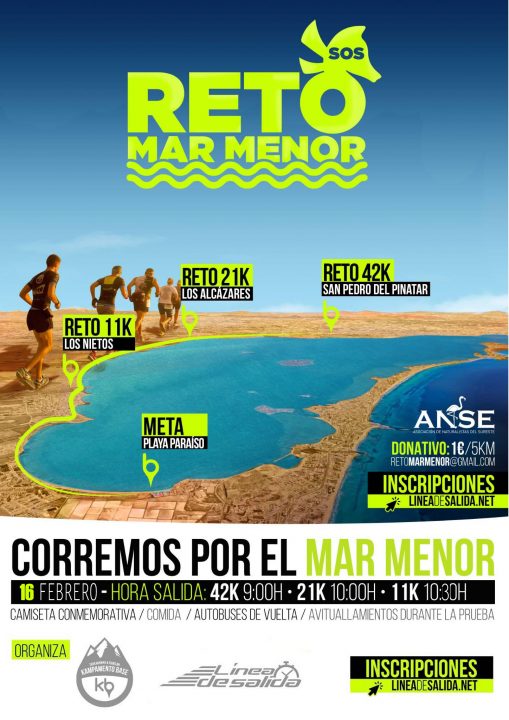 El domingo 16 de febrero se celebran tres pruebas deportivas en el entrono del Mar Menor organizadas por Lineadesalida.net y Nibar Sport (Kampamento Base). Cada una de las pruebas tendrá una distancia y un punto de salida diferentes; 42 km, que saldrá desde San Pedro del Pinatar, 21 km, que saldrá desde Los Alcázares, y 10 km, que saldrá desde Los Nietos. Todas discurrirán por el GR-92, finalizando en Playa Paraíso.