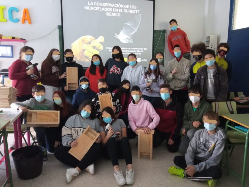 Muchos de estos grupos participaron en talleres de construcción de cajas refugio para murciélagos, donde se realizaron más de una treintena de refugios que posteriormente serán ubicados en los propios Centros Educativos y en zonas forestales y agrícolas dentro de las acciones que se desarrollan en distintos proyectos que están en marcha con este grupo faunístico. De esta forma, es el mismo alumnado y profesorado los encargados de velar por su mantenimiento y seguimiento.