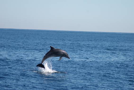 Imagen 1. Cría de Delfín mular saltando fuera del agua cerca del Else en frente de Calnegre.