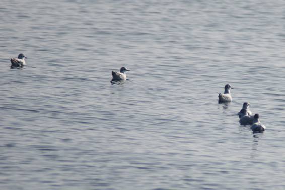 Imagen 3. Grupo de varios ejemplares en plumaje invernal de Gaviota enana, una especie de gaviota que pasa el invierno en el Mediterráneo en aguas profundas.