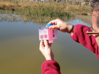 Voluntario comprobando el contenido en nitratos del agua.