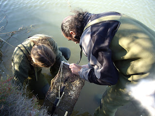 Voluntarios comprobando las capturas en las trampas tipo minnows.