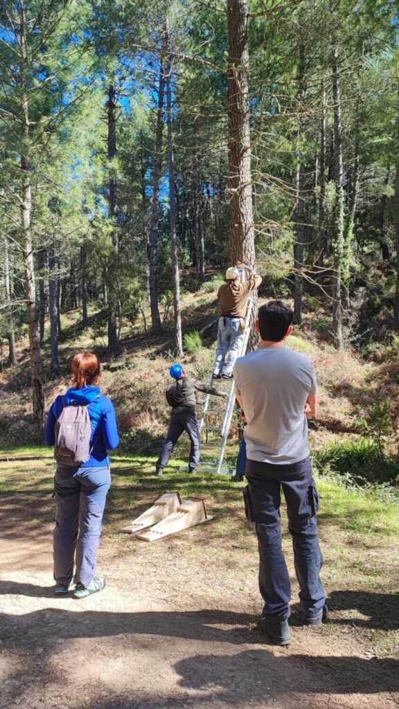 El pasado sábado 16 de marzo, una veintena de personas participaron en la instalación de más de 30 refugios artificiales para murciélagos, colocando 3 modelos diferentes de estas estructura, entre las que se incluyeron las construidas en el taller que se hizo en el Aula de Naturaleza del Parque Natural de los Calares del Mundo y de la Sima el pasado noviembre de 2023.