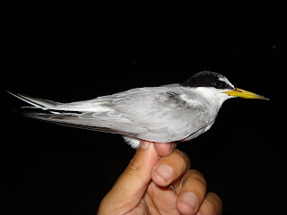 La noche entre el 9 y el 10 de agosto el grupo de anillamiento ANSE realizó una nueva jornada de anillamiento de aves limícolas en las Encañizadas del Mar Menor. En total se capturaron 26 aves de 8 especies distintas destacando 2 ejemplares adultos de fumarel común Chlidonias niger, uno de charrán patinegro Sterna sanvicensis, uno de charrán común Sterna hirundo y uno de charrancito Sterna albifrons. Se trata de 4 especies de la familia de los estérnidos que no habían sido capturadas durante la jornada anterior.