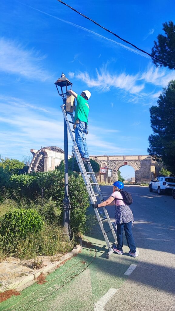Durante la jornada se colocaron una treintena de refugios tanto para murciélagos como nidales para aves insectívoras a lo largo del recorrido del Sendero Azul, que se inicia en la Noria del Rapao. Esta acción es la primera de varias iniciativas similares que se desarrollarán en los próximos meses como parte de las Soluciones Basadas en la Naturaleza (SbN) que el proyecto pondrá en marcha para mejorar la biodiversidad del entorno.