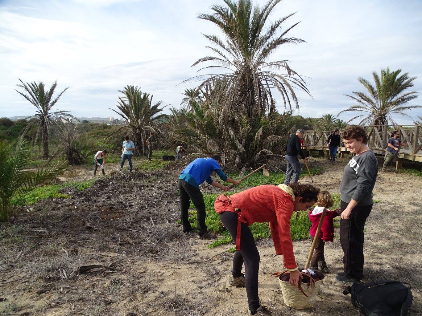 Una veintena de voluntarios convocados por ANSE, AHSA y ASE con la colaboración del Ayuntamiento de Guardamar y con el apoyo del Ministerio de Agricultura y Pesca, Alimentación y Medio Ambiente a través de la Fundación Biodiversidad ha desarrollado esta mañana de retirada de Carpobrotus y sustitución por flora dunar.
